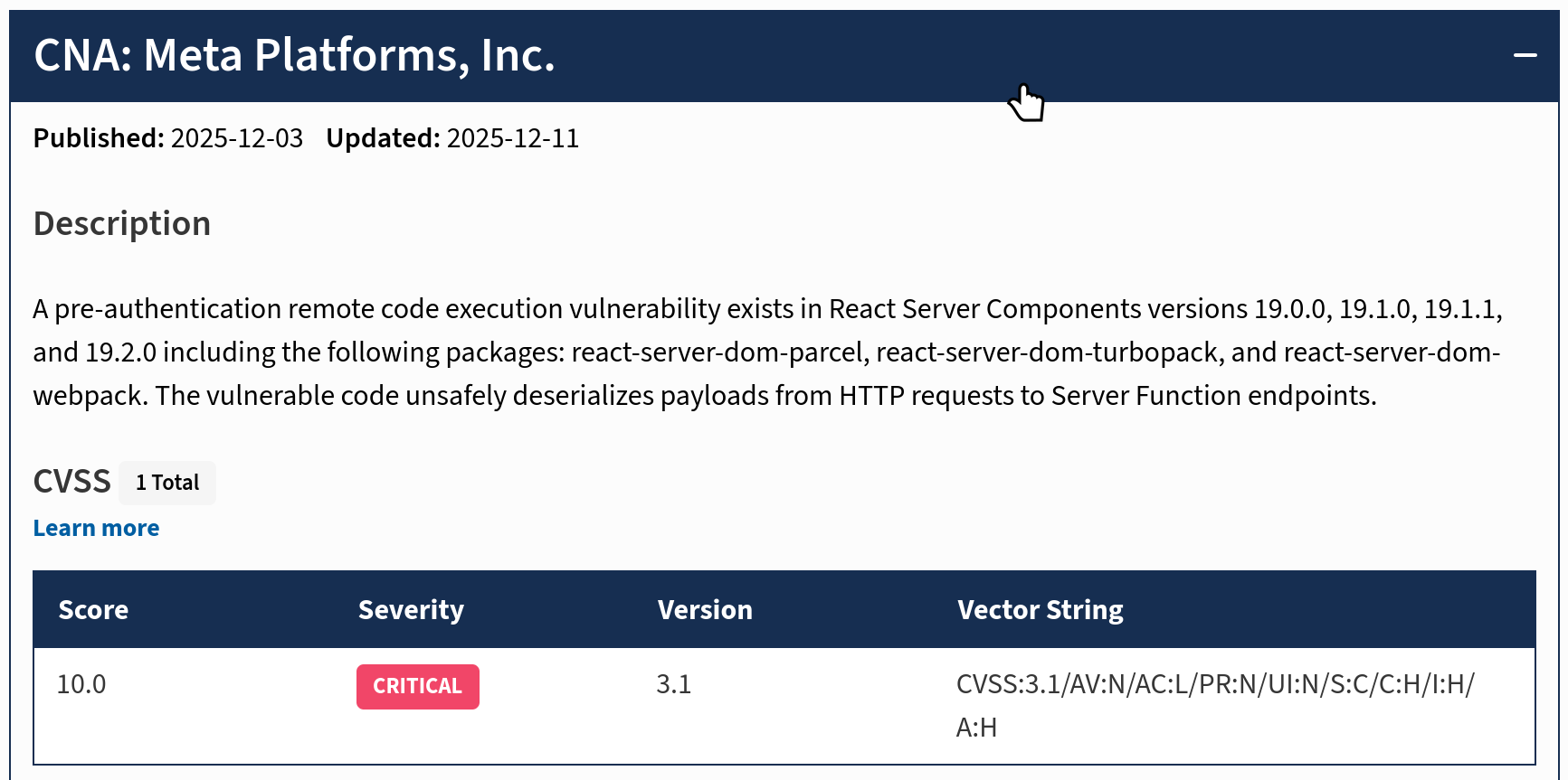 其实仔细想想deno相比node另立山头还是有些能站得住脚的实际案例支持的,整个node生态以及npm是不是太过于信赖开发者了,对于npm中的package包含恶意代码,npm包用当作云盘滥用其实也屡见不鲜了,加上RSC的设计上的灵活与创新,可以看得出来自由在背后已经标明了价码,创新并不是一帆风顺,看看最近明星rust的设计,就会觉得不奇怪了,如果我不参与代码细节开发,我肯定希望关系到我的代码是安全的。react作为一个知名的国外前端工具,meta公司做背书,从出现问题的最早版本19.0.0正式版发布到cve揭露已经过去快一年时间,如此大的体量、以及如此长的时间,作为开源才被揭露这些RCE(远程调用执行)这种致命问题,可以看得出大家对于公开审查这个事情看得太乐观了,所以也能理解有些公司的技术评审以及倾向老的版本,我也不再是埋头猛冲,涉及到数据的事情也变得“瞻前顾后”。再说说最近我最近都在用svelte框架,有时候我总觉得我会偶然间被星运女神眷顾,其实作为开发者,受限于生物所接受的带宽,代码开发的依赖除了了解过接口、设计,整个具体实现无异于一个黑盒,能够安全运行下去又何尝不是一个幸运。